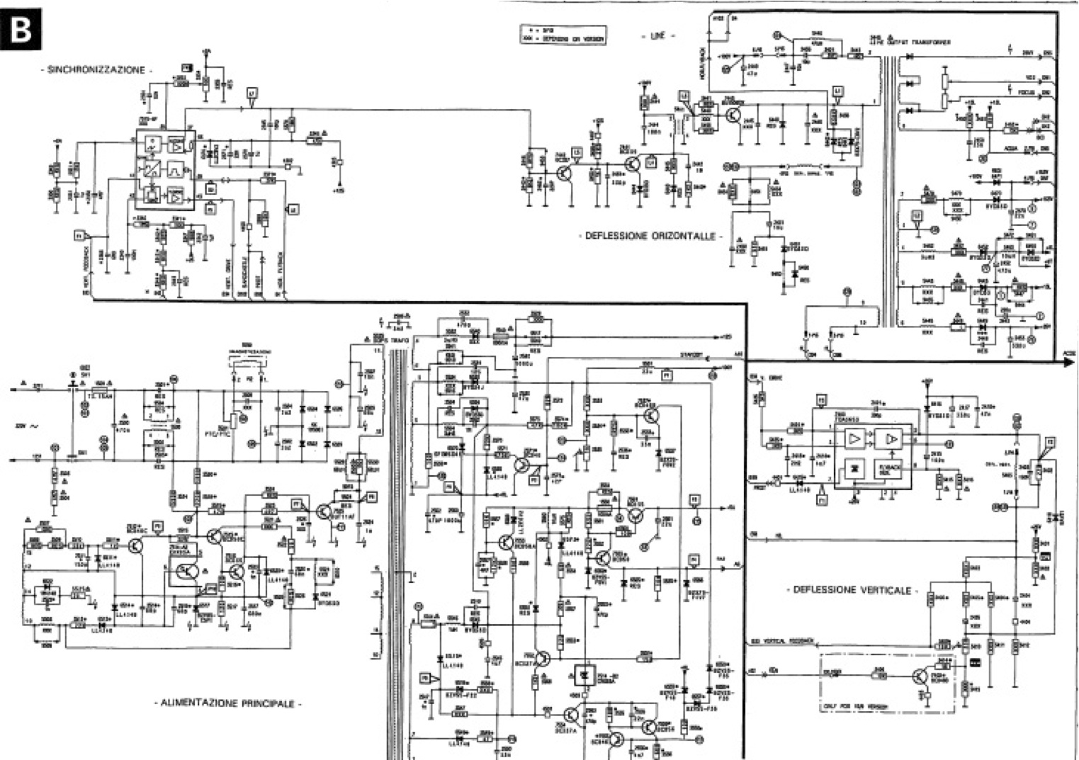 Another example of the close relationship between design notations and maths in the tradition of engineering is the design of electrical circuits. Below there is a typical (although dated!) example thereof, related to a commercial device (copyright PHILIPS):