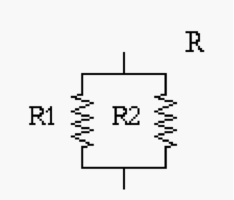 We immediately note that there are some basic components (for resistors, inductances, capacitors, etc.), possibly with some quantities associated with them, and standardized systematic ways of composing them (e.g. in series, in parallel, in series-parallel, etc.). Again, although the above graphic descriptions are quite evocative of the physical objects they represent, we can use them for reasoning about our designs in rather abstract and often mechanical ways, with the help of some math, and without necessarily having to experiment repeatedly with physical realizations of our circuits. For instance, as you will remember, by using Kirchhoff laws, we can predict that the resistance offered by the circuit below at its terminals is R=R1*R2/(R1+R2).