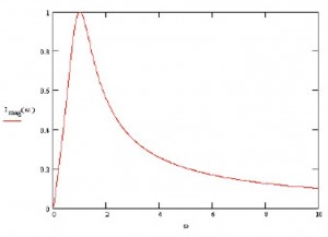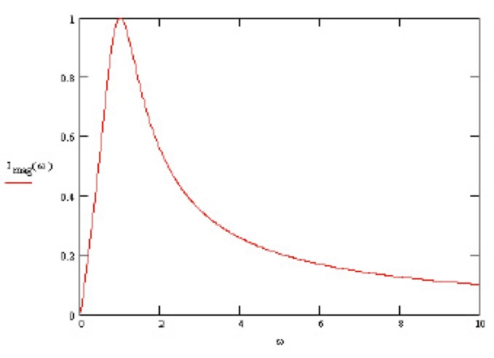 The frequency w of the sine is that specific of the PU. It is useful to study how the amplitude of the above signal, i.e. the (absolute) value of the peaks, changes with w. It can be shown that (for appropriate values of R, L, and C) as w increases from 0 the amplitude increases as well, reaches a max and then decreases again, as follows: