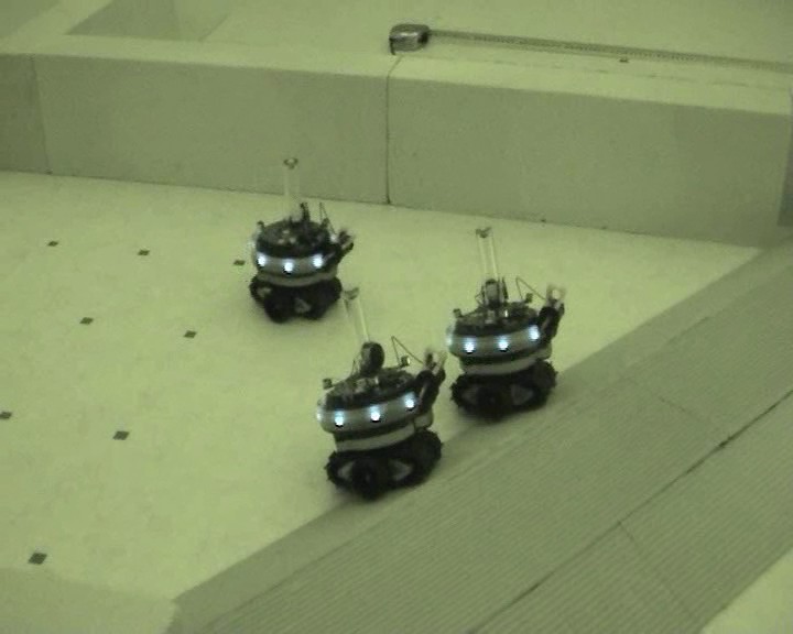 if they encounter a hill to steep to climb alone. Looking at one of the video demo is impressive: the robots try and fail several time until they finally succeed (or maybe some robots is left alone behind). There is little doubt in calling the software of the robots (self-)adaptive. Still, a closer look at the so-called basic self-assembling strategy they run reveal a finite state machine controlling the adaptation strategy, not much different than a few conditional statement in a program in the end.