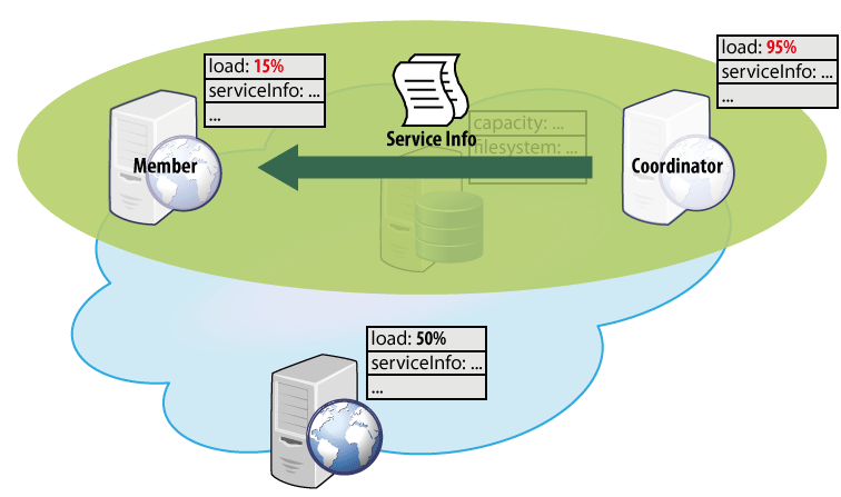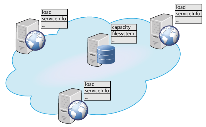 The challenge here is to decide which of the nodes the service information should be given to and when, since the nodes join and leave the network dynamically. In DEECo, this is solved by describing such a node interaction declaratively, so that it can be carried out in an automated way by the runtime framework when appropriate.